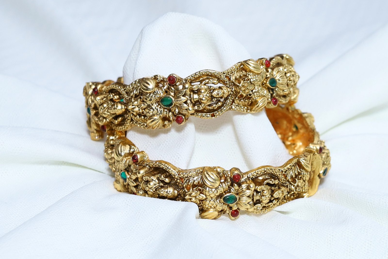Celebrate divine elegance with the Devi Alankara Kada, a beautifully crafted piece inspired by traditional temple jewelry artistry.
