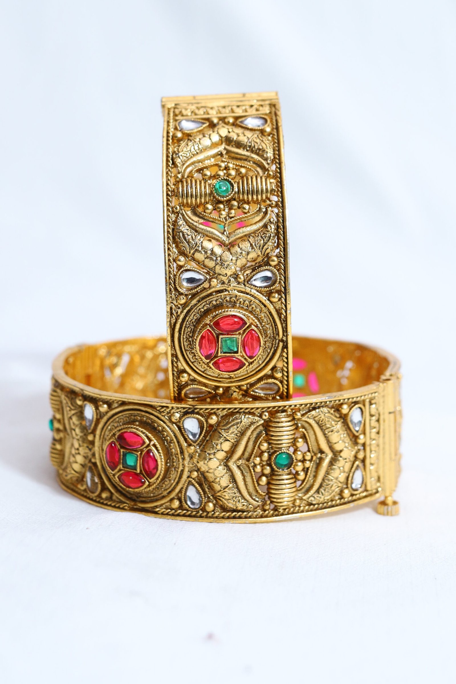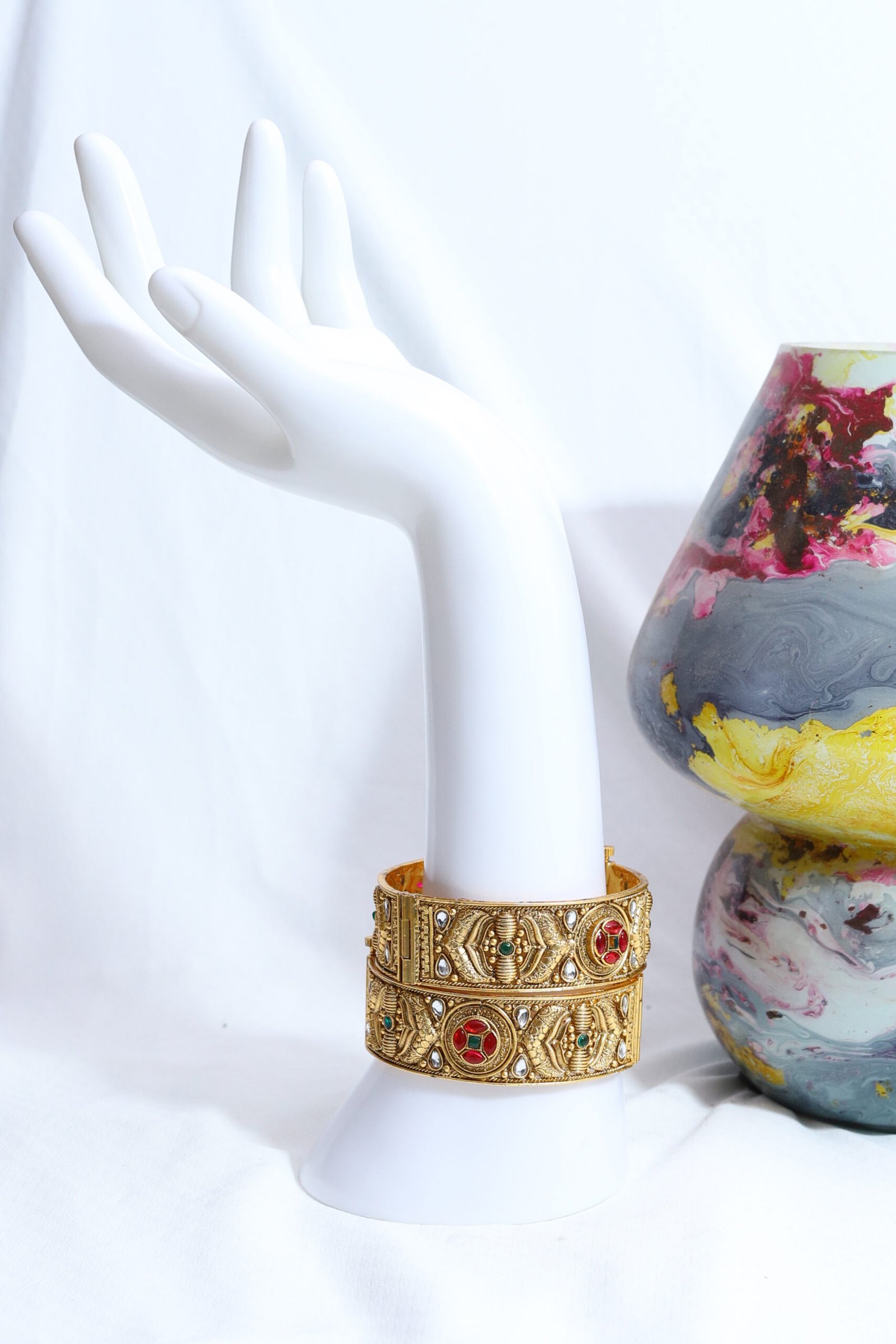 Celebrate timeless elegance with this intricately crafted kada set, designed to reflect the richness of traditional artistry. Whether paired with ethnic wear or fusion outfits, this set effortlessly elevates your look.