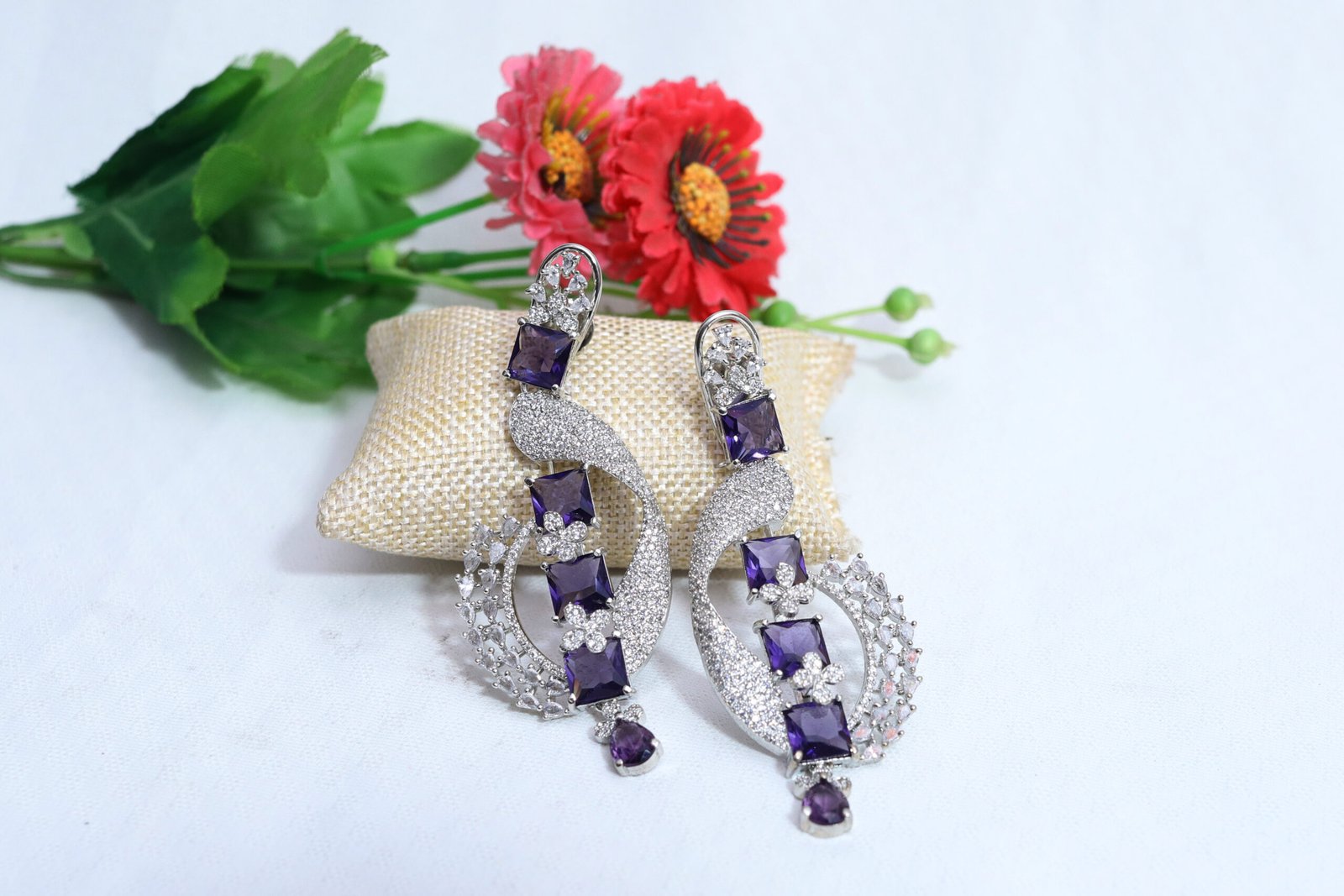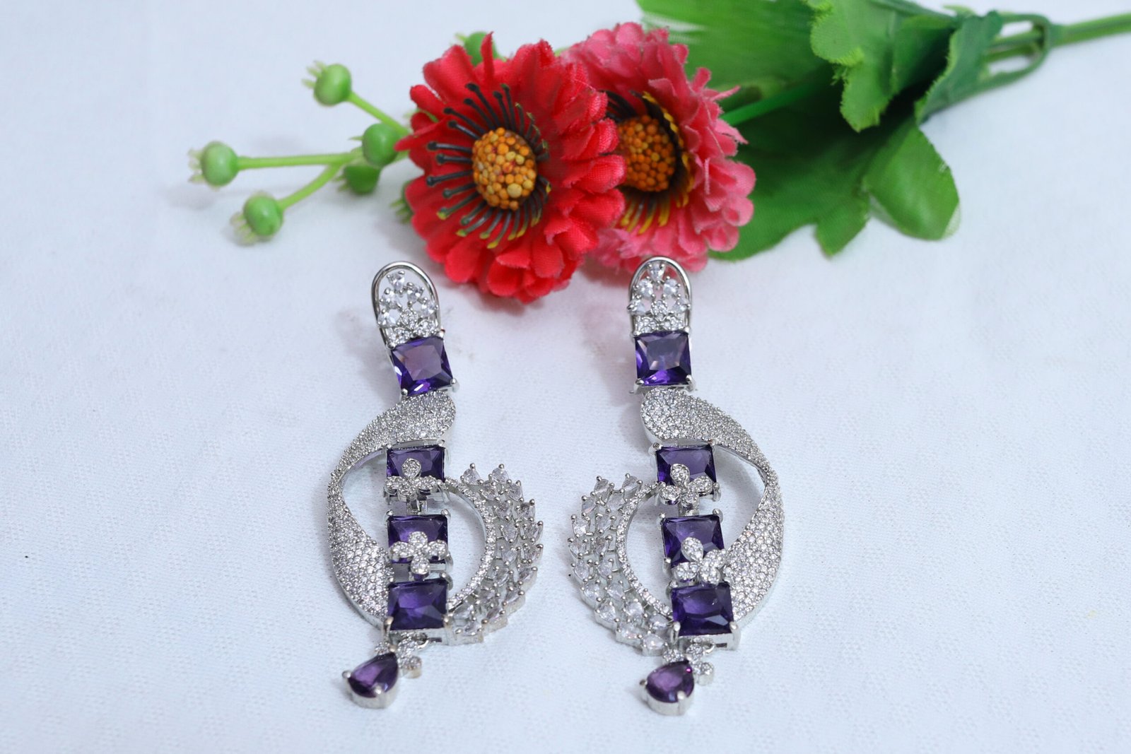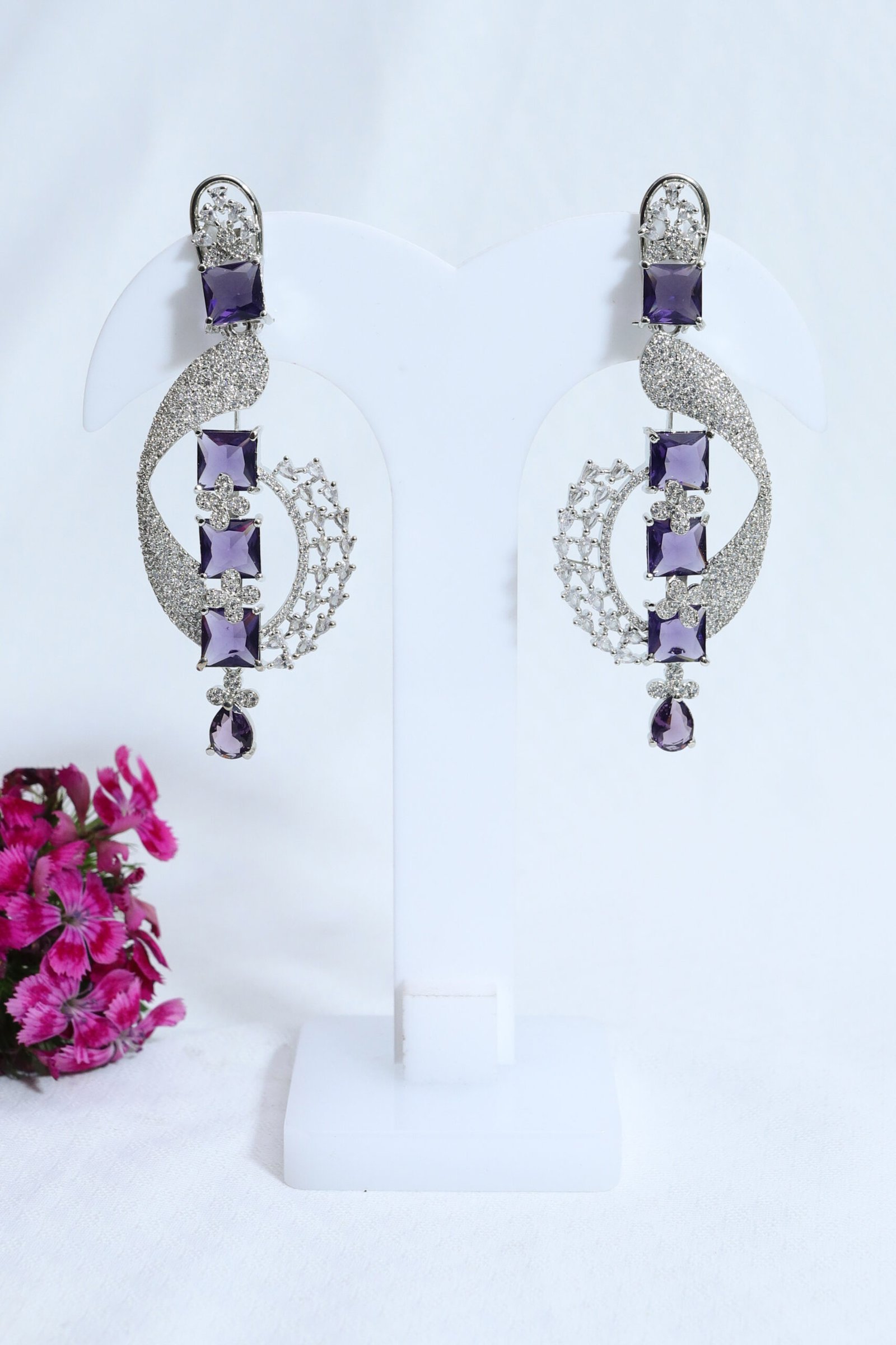 • Stone Details: White American diamonds with purple stones