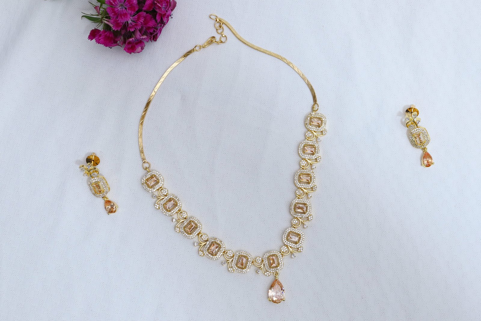 - Earrings: Matching drop earrings included