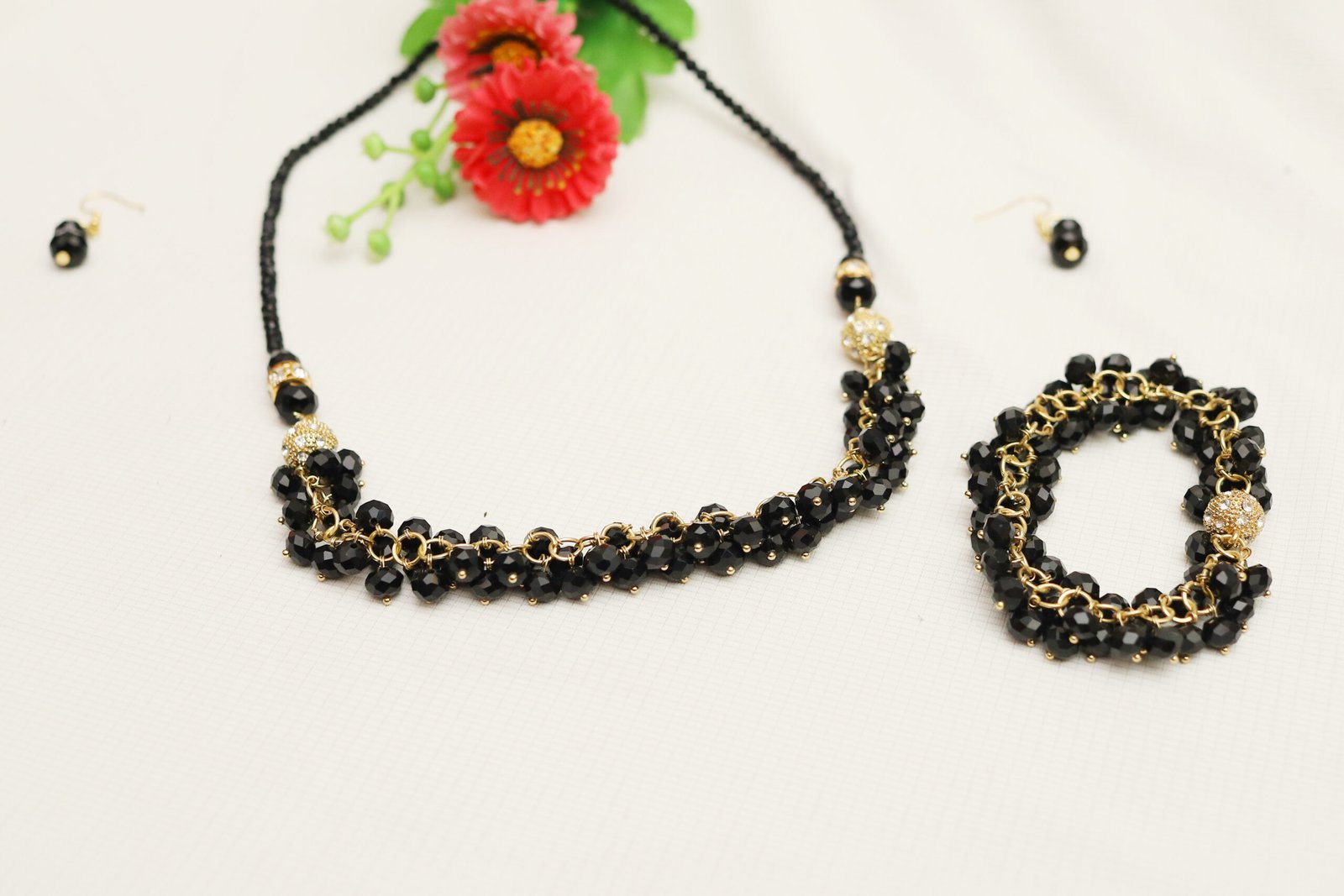 • Color: Black beads with gold-tone accents