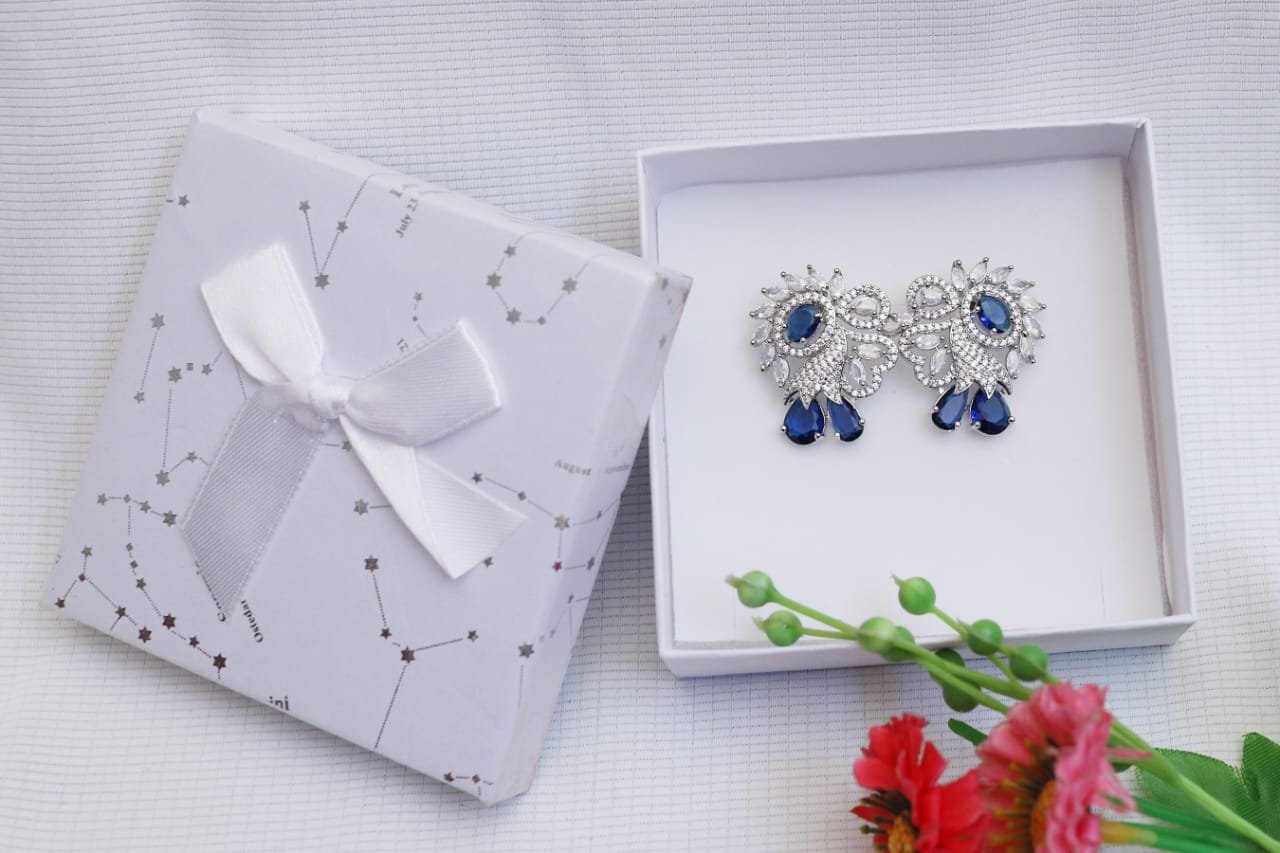 Featuring a delicate flower-inspired design, these earrings are adorned with shimmering American diamonds that create a radiant and elegant finish.