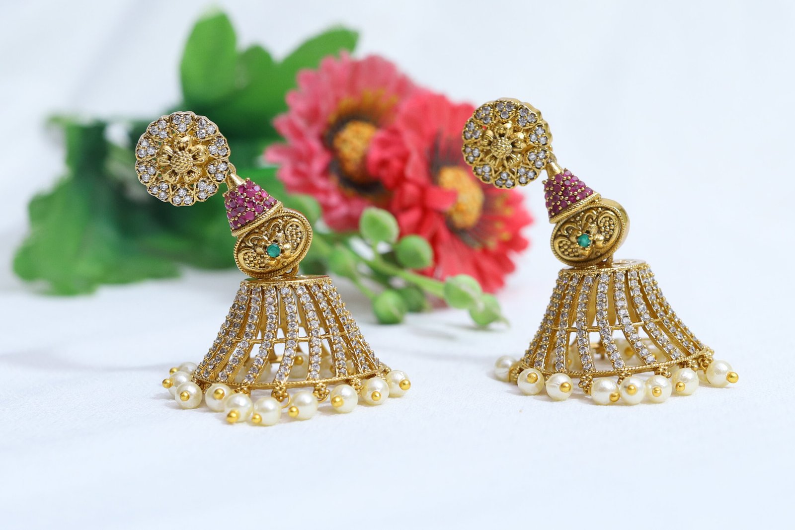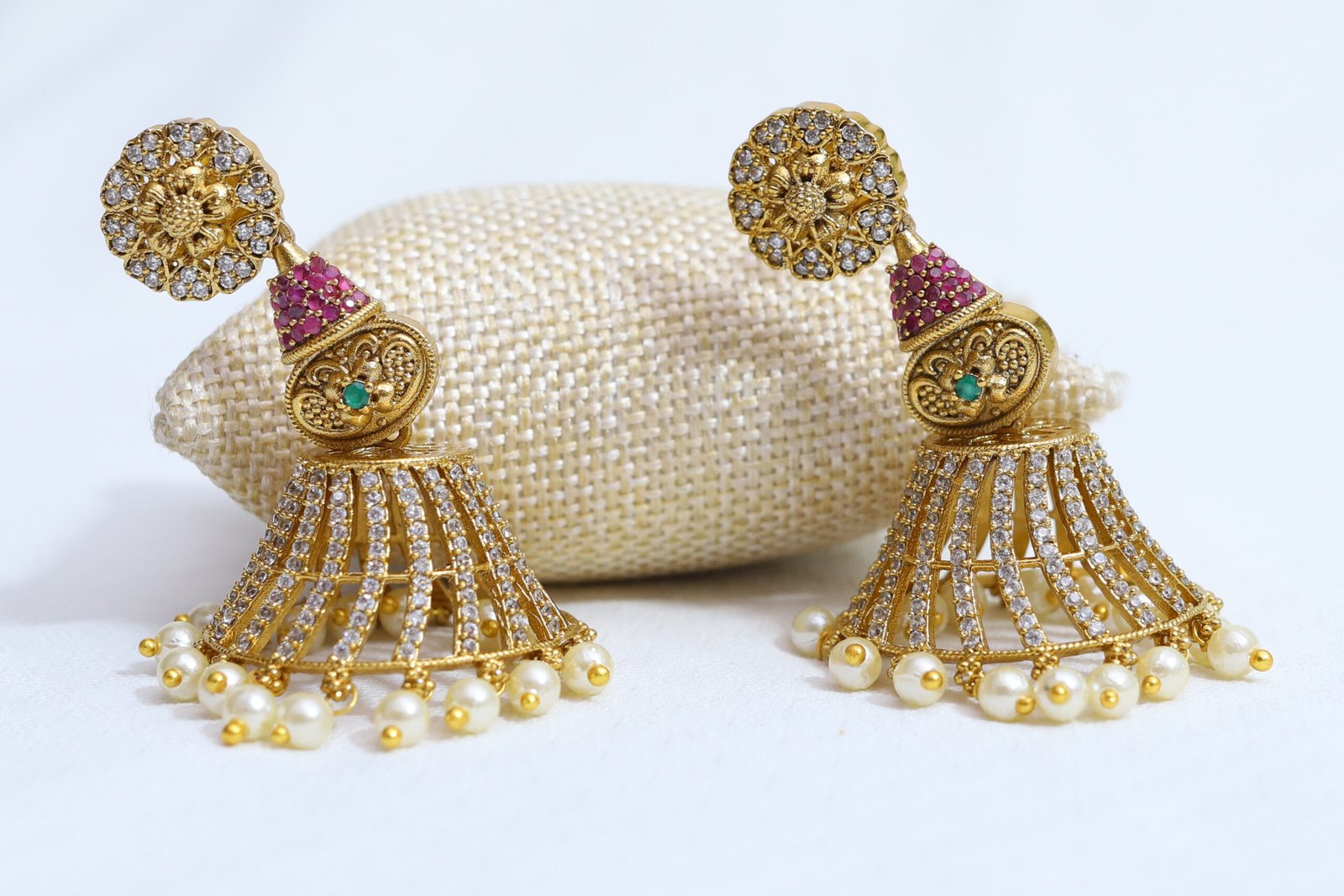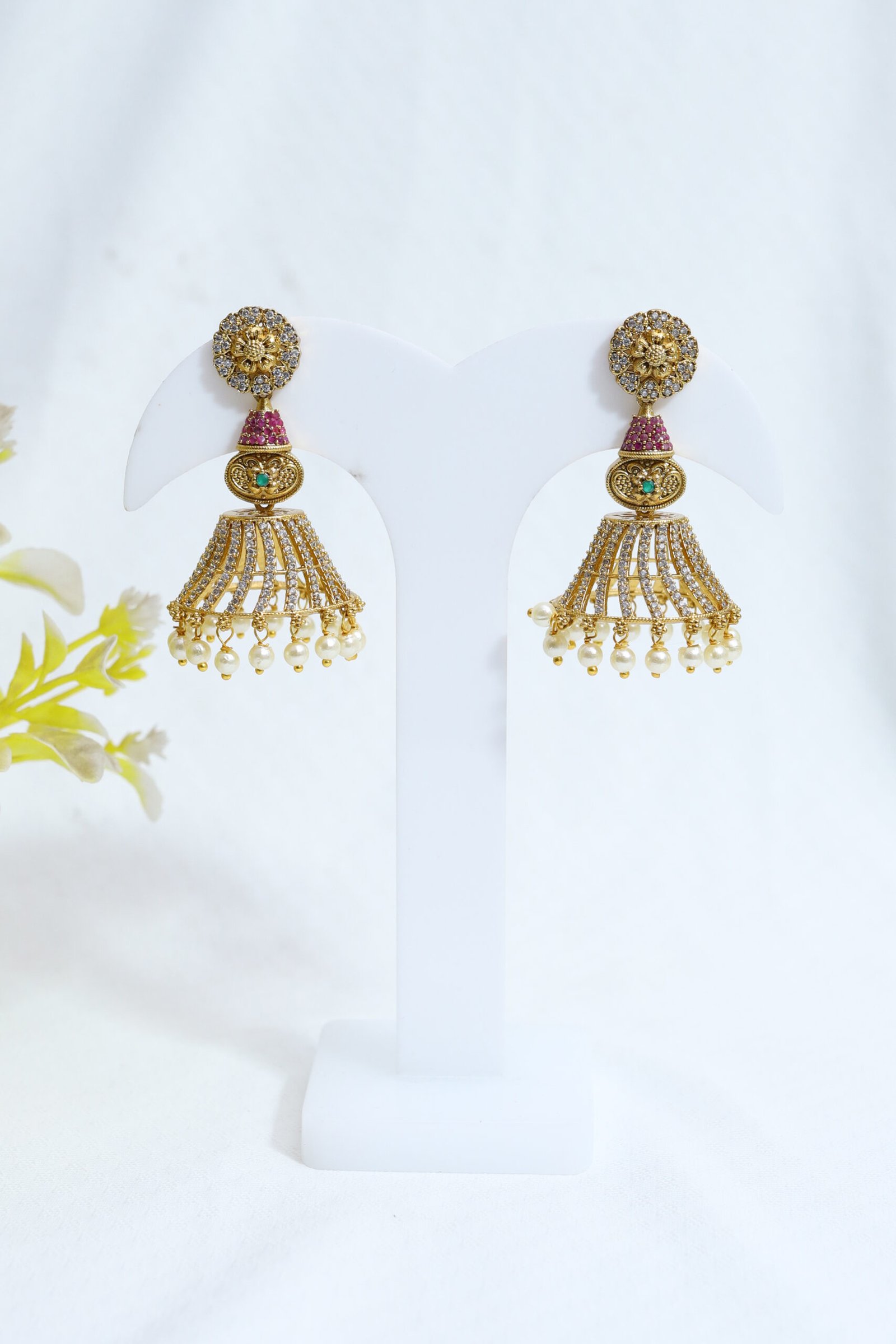 Designed with a dazzling zircon-studded top and a hint of color from delicate stone accents, these earrings radiate charm and sophistication.